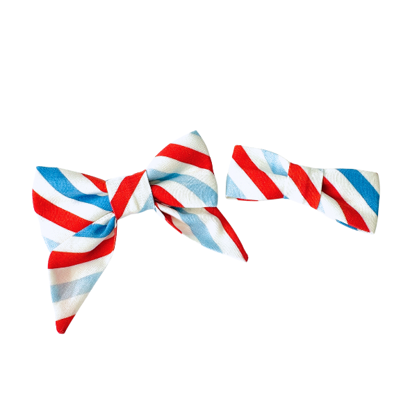 The Nantucket Stripes Bows are made with 100% cotton fabric, and reinforced with fabric stabilizer. They feature two soft elastic straps that make it easy to slip on to any collar.