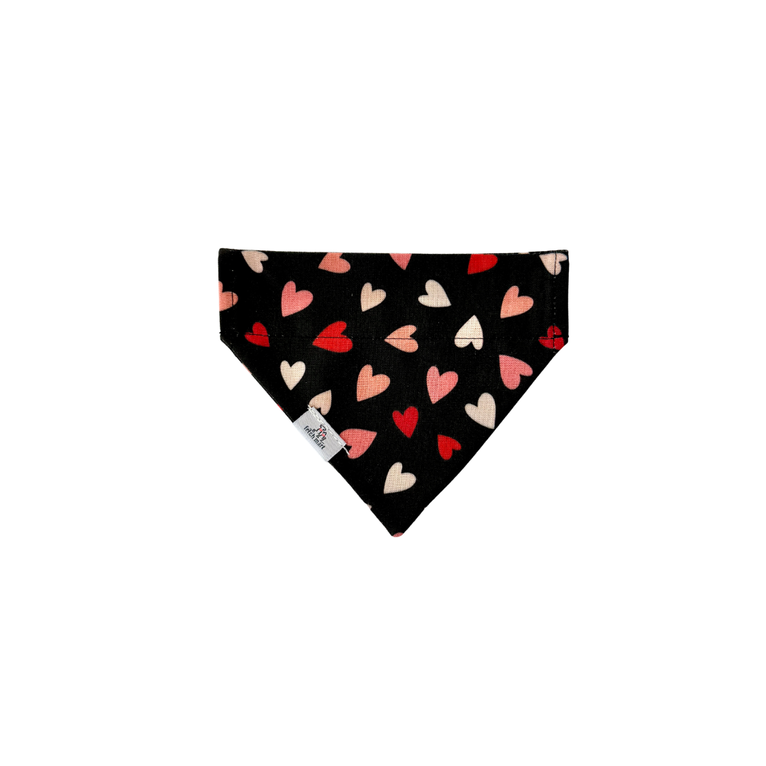 The Lovestruck Cat Bandana is made with 100% cotton fabric. Slip on bandanas stay put and allow you to access the d-ring on your cat's collar.