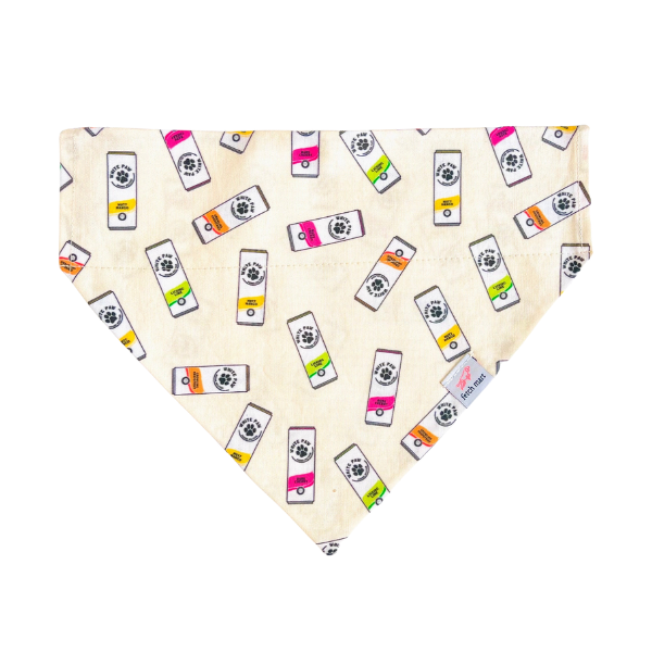 The White Paws Bandana is made with 100% cotton fabric. Slip on bandanas stay put and allow you to access the d-ring on your dogs collar. Tie on bandanas tie around your pets neck.