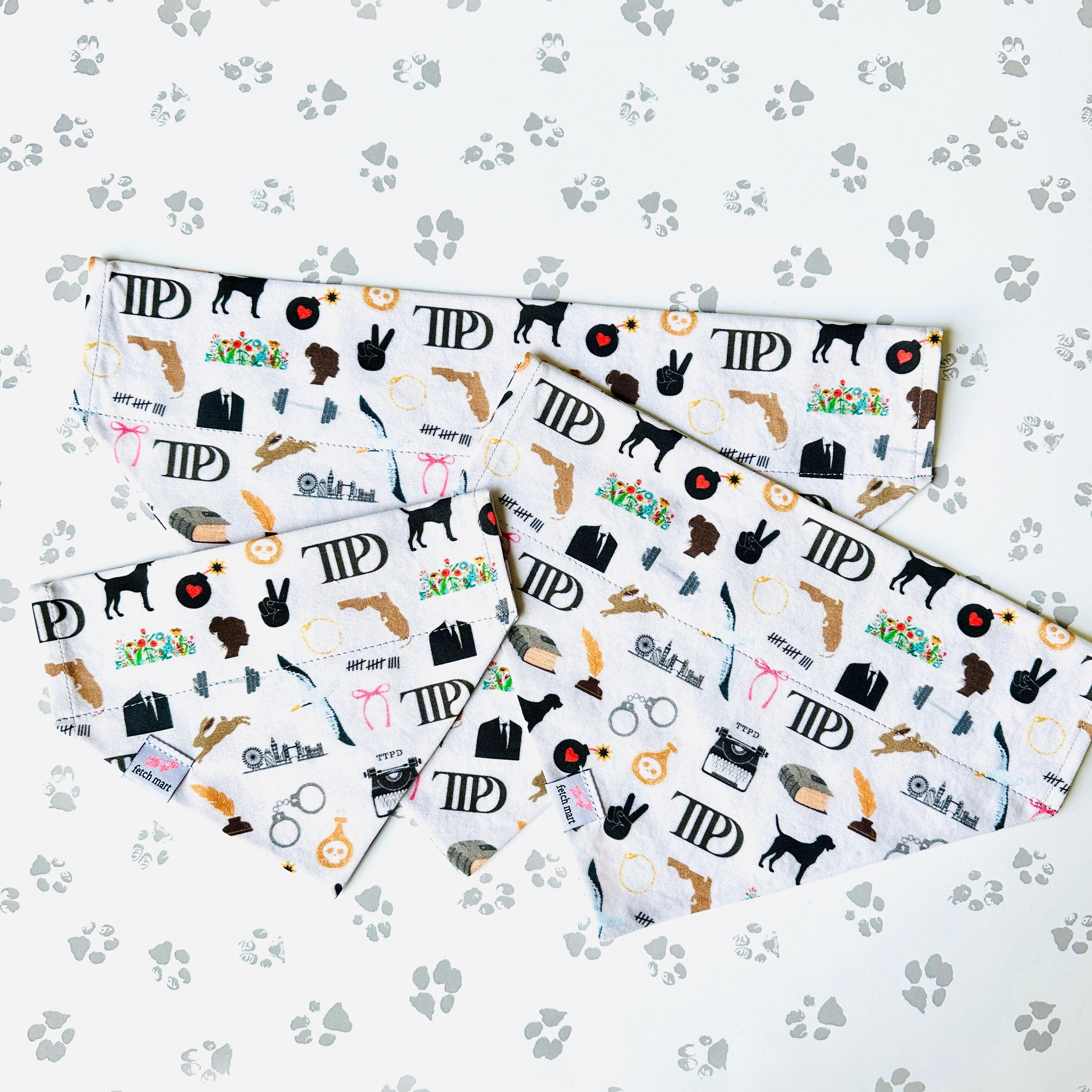 The TTPD Era Bandana is made with 100% cotton fabric. Designed by Fetch Mart, this one of a kind bandana features designs that represent the TTPD Era.