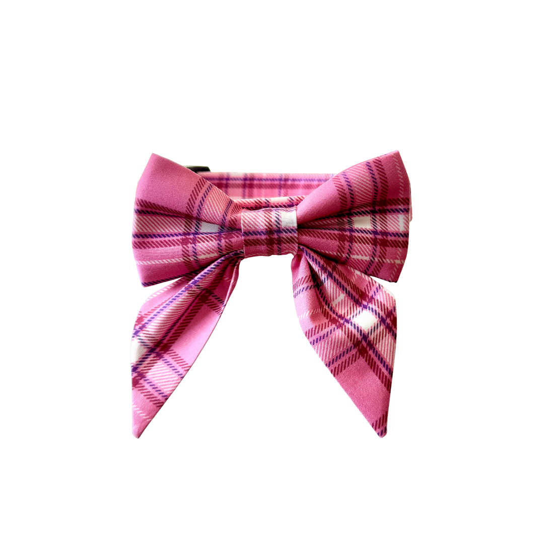 The Sweet Tartan Plaid Sailor Bow is made with 100% cotton fabric, and reinforced with fabric stabilizer. It features two velcro straps that make it easy to attach to any collar.